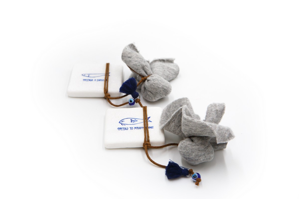 Διακοσμηστικό μαρμαράκι μπομπονιερα με σαρδελες