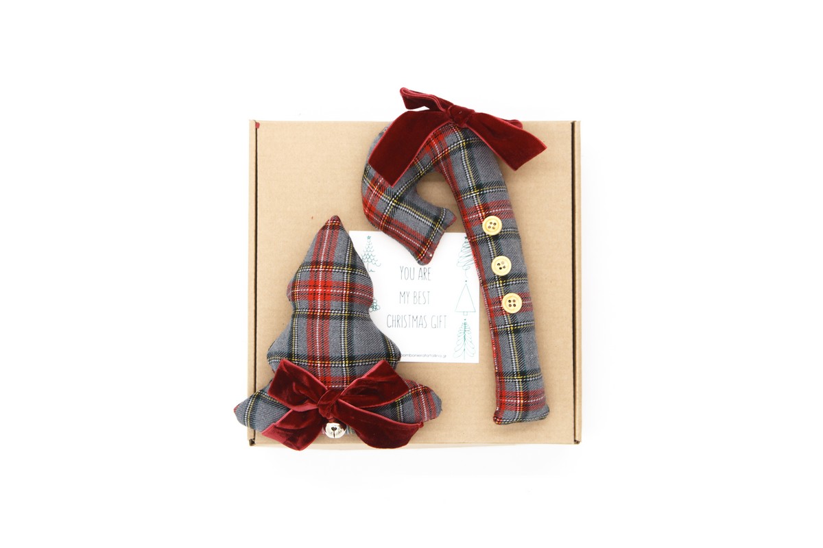 Σετ στολιδάκια γκρι καρο